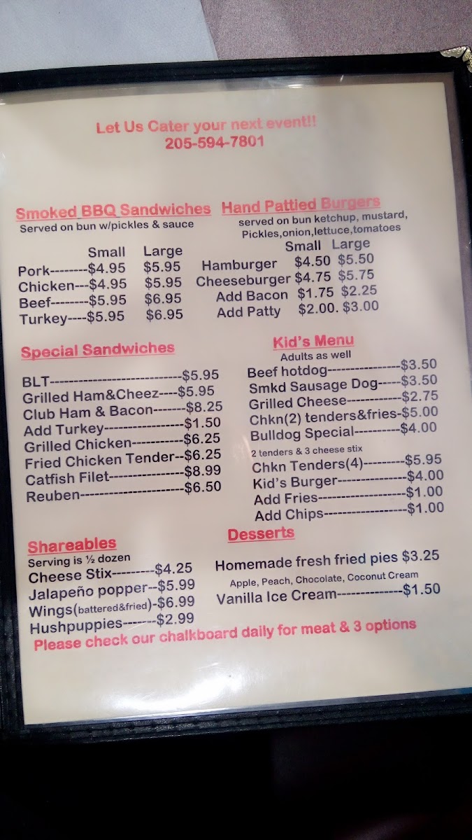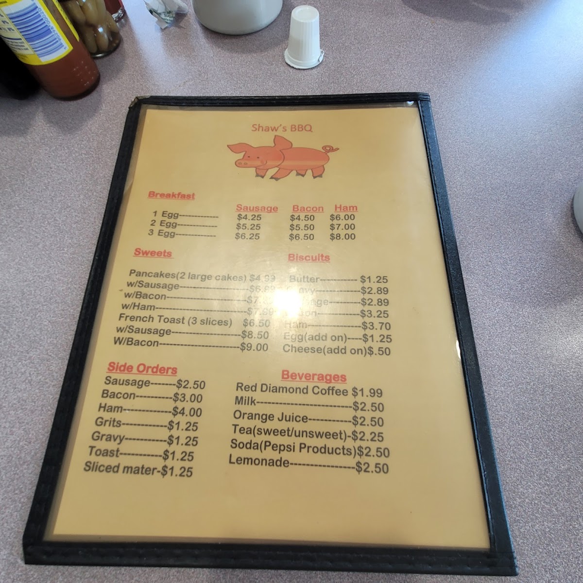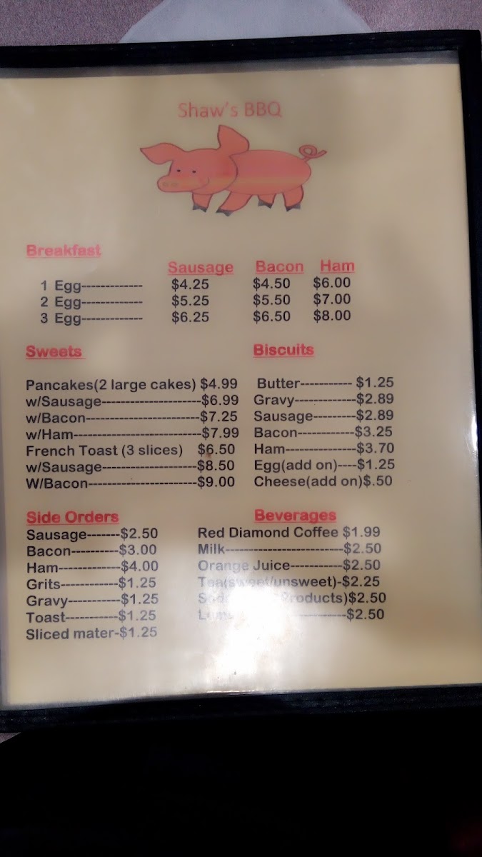 Shaw's Bar-BQ, Inc. Menu